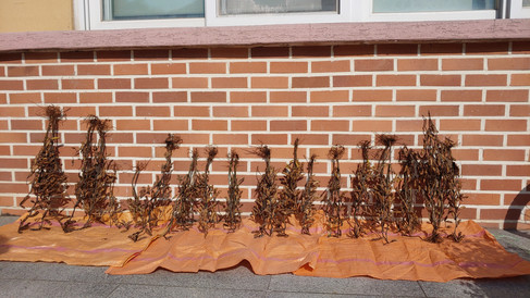 벼를 찧고 나서는 마당에 쌓아 천천히 숯을 만들었다. 몇 해 연통을 달고 시린 손 비벼가며 지키고 서서 검게 타기 시작하면 왕겨를 덮고 또 덮어가며 만들었는데 힘이 들어 포기했다. 대신 왕겨로 밭두둑을 덮고, 어린나무라 낙엽이 적은 어린 숲밭에 두툼히 덮었다. 회관 앞 둥구나무 낙엽은 아스팔트 위에서 처치 곤란 쓰레기 취급을 받는다. 낙엽이 잔뜩 쌓이면 할머니들은 한테다 모아 태워 버린다. 태우기 전에 모아 밭으로 보내기 위해 눈치 싸움을 한다. 큰 포대를 사다 주며 동생에게 일거리로 부탁했다. 가득 모은 낙엽을 동생에게 사서 밭에 나른다.